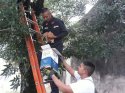 Los Bomberos  Voluntarios de Saladas rescataron a un gatito atrapado en un árbol