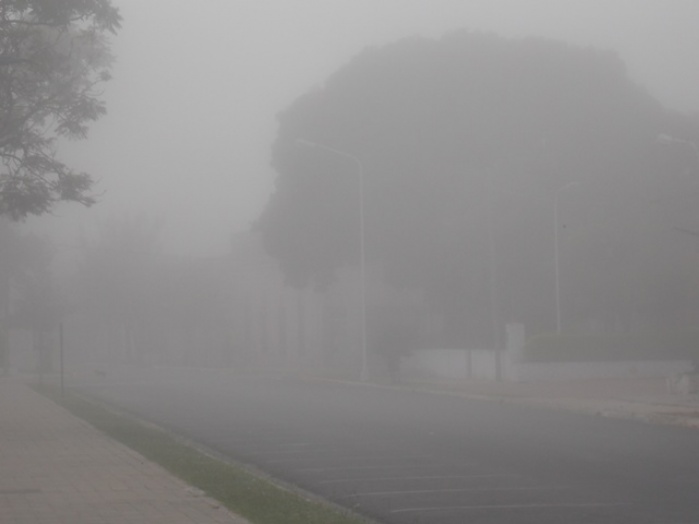 Aprovechando la cercanía de plaza Cabral de Saladas con esta redacción, tomamos imágenes de la neblina que cubría a dicho espacio público.