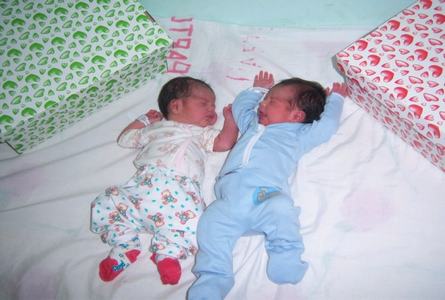 María Teresa y María Paz García, de 2,850 y 3,279 respectivamente, nacieron en el Hospital María Auxiliadora de Saladas a las 10:20, este 1 de enero del 2011 en perfecto estado de salud con atención de las doctoras Sandra Almirón, Vilma Gómez y Lourdes Benítez, recibiendo también el ajuar donado para ellas.