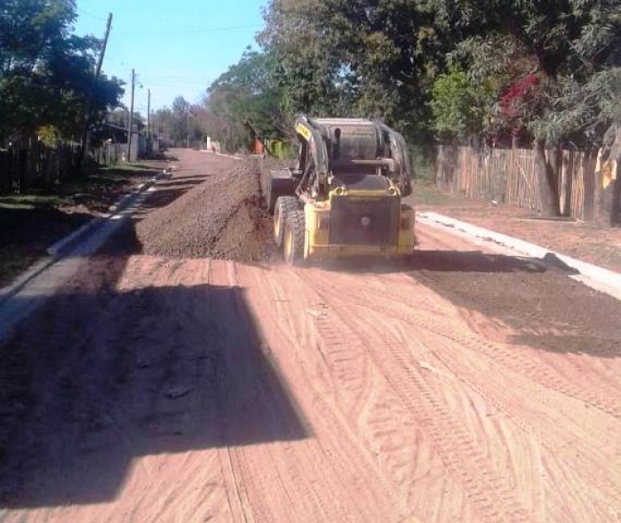 La Municipalidad de Saladas, a través de la Secretaría de Obras y Servicios Públicos continúa con el plan de cordones cuneta y enripiado de calles, en barrio Centenario.