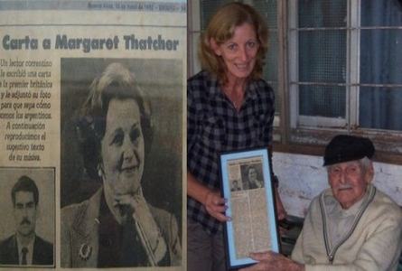 A la gente le pedían por diario, por radio que escriban al presidente norteamericano, al de Francia, al rey de España, pidiéndoles por la paz, ellos formaban el grupo en la que estaba la Thatcher , del grupo que hacen al poderío ingles. Yo decidí escribirle a ella, a Margaret.