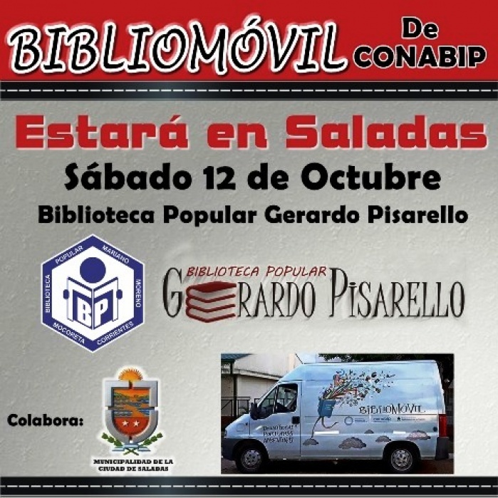 Esta actividad de la Asociación de Amigos de la Biblioteca Popular Municipal “Gerardo Pisarello” de Saladas, cuenta con la colaboración de la Municipalidad de la ciudad de Saladas, que aportó una ayuda económica a dicha comisión, a efectos de solventar parte de los gastos que demanden, la realización de la jornada cultural y de promoción de la lectura con el uso del Bibliomóvil. Desde la organización aclararon, que el uso del Bibliomóvil, es totalmente gratuito y que no se trata de una venta de libros (solo lectura).