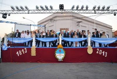 El jefe del Regimiento de Granaderos a Caballo con asiento en Yapeyú, Teniente Coronel Rubén Orlando Cordón hizo entrega de un obsequio al pueblo de Saladas, recibido por intermedio del Intendente Daniel Alterats que consistió de una figura, como también el jefe comunal de Curuzú Cuatiá Prof. Ernesto Gabriel Domínguez, le concedió una placa alusiva a la comunidad saladeña.