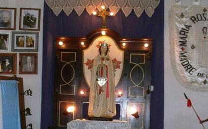 En el pedestal que la sostiene, están pintadas tres rosas, una blanca, una roja, y una dorada y en el halo luminoso que la rodea, se destacan tanto a la derecha como a la izquierda, 13 rosas doradas. Notable coincidencia con la fecha 13 de julio de cada año que pide la virgen para ser honrada como Rosa Mística.