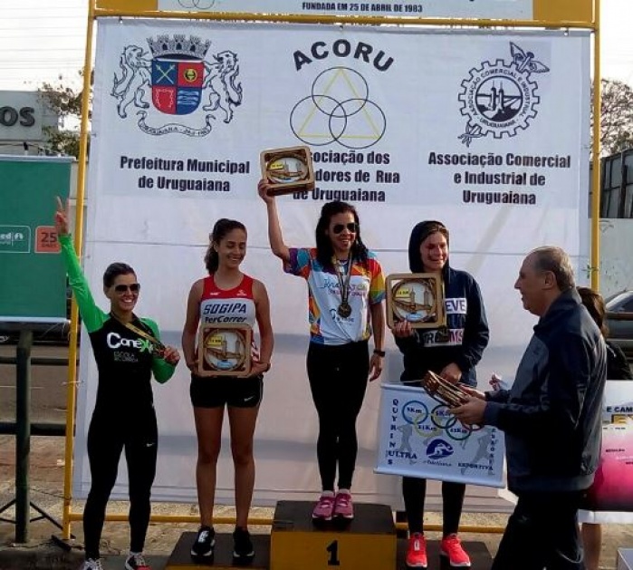La maratonista saladeña en lo más alto del podio de la general 10Km. de la “11ª Rústica de Uruguaiana Internacional 2017”